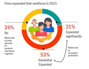 Amidst economic dynamics, the export sector exhibited robust growth in 2023. Exporters stressed that increasing utility prices and the cost of transport and logistics posed significant challenges during 2023. Service-oriented exporters grappled with a lack of skilled labour, highlighting a sector-specific challenge that warrants attention. However, most exporters identified new business opportunities, leading to workforce expansion to meet growing production demands.